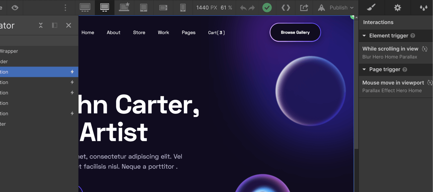 As you could see above, NFT Webflow was built on Webflow using the best practices to make it very easy for you to edit the template and customize it to your needs.
