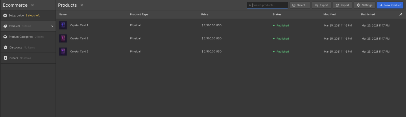 Products or eCommerce content function in a similar way to the CMS dynamic content, however, this is focused exclusively for eCommerce products.